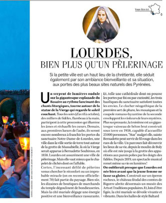 Silapetitevilleestunhautlieudelachrétienté,elleséduitégalementparsonambiancebienveillanteetsasituation,auxportesdesplusbeauxsitesnaturelsdesPyrénées,UnserpentdeIumièresondulesurlagigantesqueesplanadeduRosaireaurythmelancinantdeschantsliturgiques,tourneautourdelastatuedelaViergequiregardelesoleilcouchant.Touslessoirs(d’avrilàoctobre),desmilliersdefidèles,flambeauàlamain,participentàcetteprocessionquiilluminelesâmesetréchauffelesSilapetitevilleestunhautlieudelachrétienté,elleséduitégalementparsonambiancebienveillanteetsasituation,auxportesdesplusbeauxsitesnaturelsdesPyrénées,UnserpentdeIumièresondulesurlagigantesqueesplanadeduRosaireaurythmelancinantdeschantsliturgiques,tourneautourdelastatuedelaViergequiregardelesoleilcouchant.Touslessoirs(d’avrilàoctobre),desmilliersdefidèles,flambeauàlamain,participentàcetteprocessionquiilluminelesâmesetréchauffeles